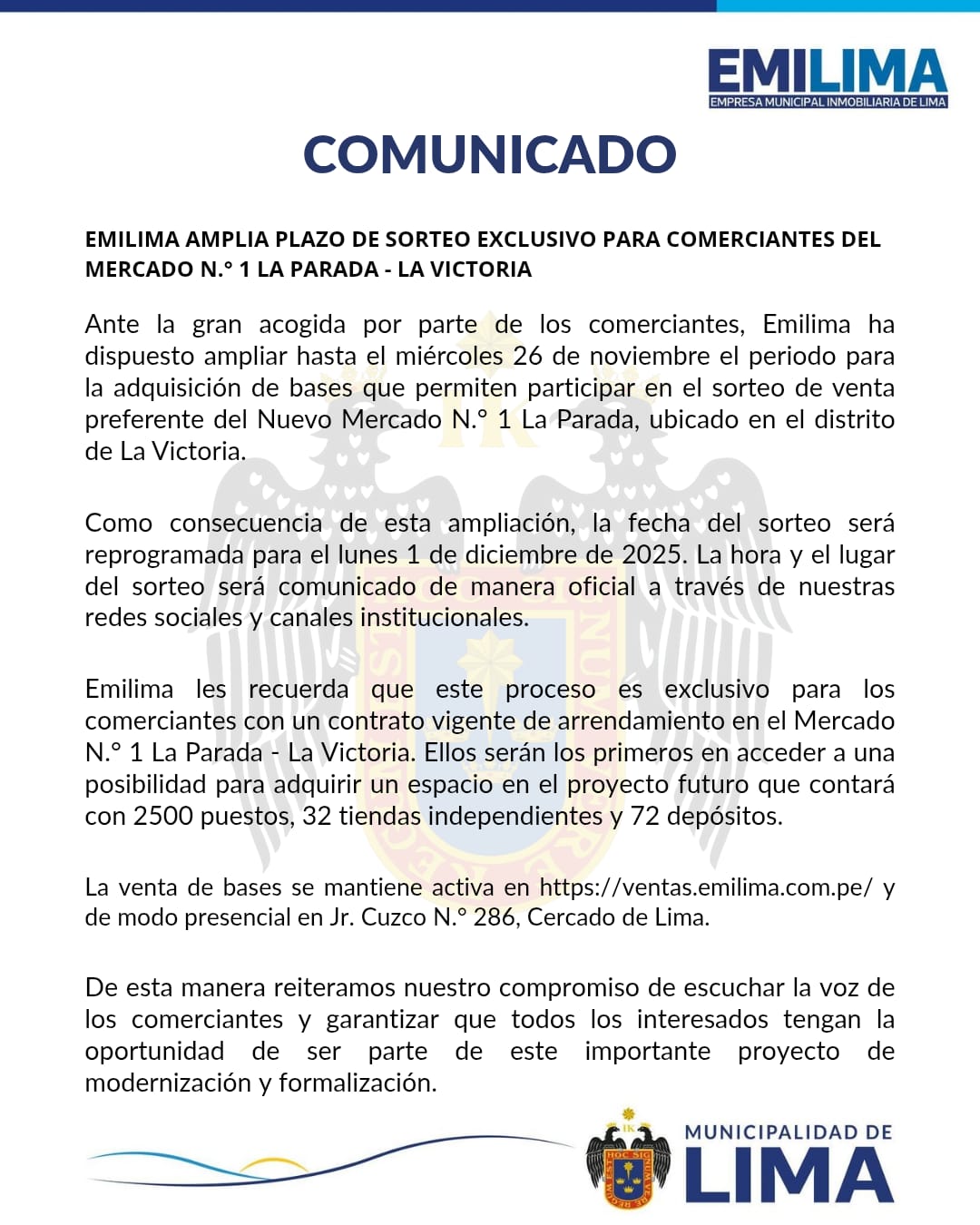 EMILIMA S.A. es una empresa de propiedad de la Municipalidad Metropolitana de Lima, con personalidad jurídica de derecho privado, creada mediante Acuerdo de Concejo N° 106, de fecha 22 de mayo de 1986, e inscrita en la Partida Electrónica Nº 00824828 del Registro de Personas Jurídicas de la Zona Registral N° IX -Sede Lima. Ha sido constituida bajo la forma de sociedad anónima y se rige por sus estatutos sociales, la Ley General de Sociedades y otras normas que la comprenden.